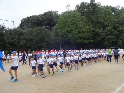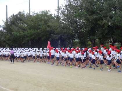 まずは開会式の入退場の練習をしました。行進のしかたを練習したり、自分の座席を確認したりしました。みんなの動きがそろうとかっこいいですね!頑張りましょう!