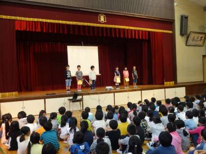 終業式のあと、金閣タイムを行いました。今回は2年生と4年生の発表でした。