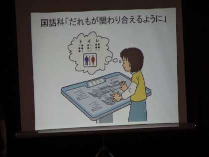 4年生は、国語科「だれもが関わりあえるように」で学んだこと、調べたこと、考えたことなどについて発表しました。