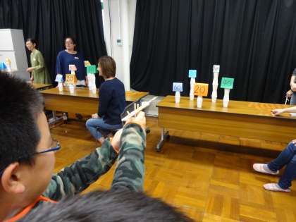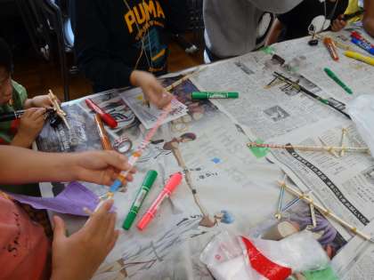 保健厚生部は割りばしてっぽうと的あて、図書サークルは紙芝居とふわふわマグネット作りを企画しました。