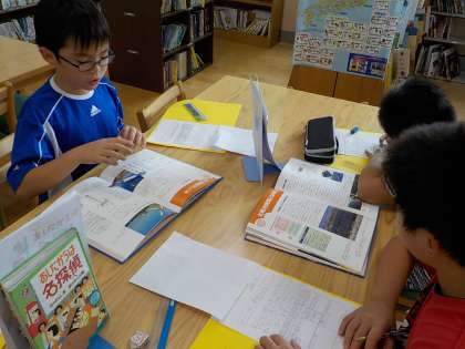 今日もはばたきの時間に,調べ学習を進めました。インタビューをしたりアンケートの集計をしたり本やインターネットで調べたり・・・。それぞれのグループの内容に適した方法で調べることができています。