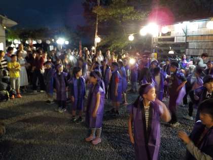 先週の土曜日に原谷弁財天に演舞奉納としてソーラン節を踊ってきました。はじめての本番に少し緊張した様子もありましたが,力いっぱい踊る姿が素敵でした。よく頑張りましたね!