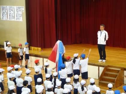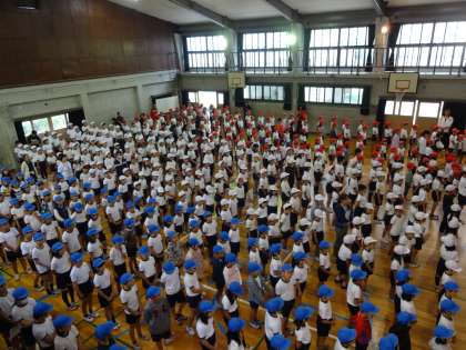 本日2校時は、講堂で開閉会式の練習を行いました。