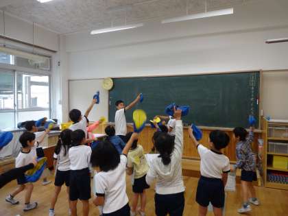 続いて3校時には、教室で各クラス各色ごとにわかれ、そこに応援団員が行き、応援練習を行いました。