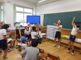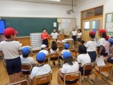 運動会まであと4日です。今日は、各色の応援団の団員がにじの子学級に来て、運動会の応援練習を行いました。応援が盛り上がるように各色工夫されており、にじの子の子どもたちもノリノリで大きな声で応援練習をすることができました。運動会での各色の応援の様子にもどうぞご注目下さい。