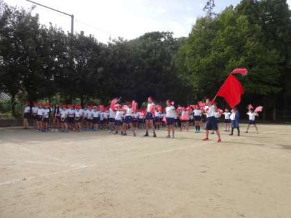 その後、エール交換の練習を行いました。昨日の練習の成果が出て、どの色も大きな声で、そろってエールをおくることができました。