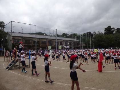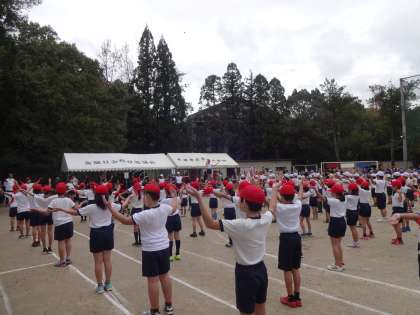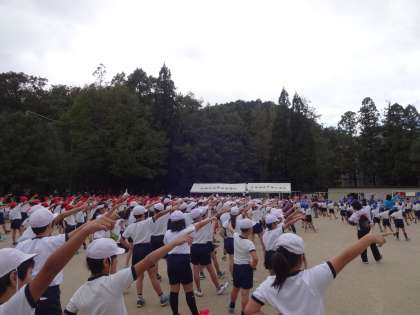 開会式の最後には、準備運動として、ダンスクラブが振付けを考えたダンスを、音楽に合わせて元気よく全校児童で踊りました。