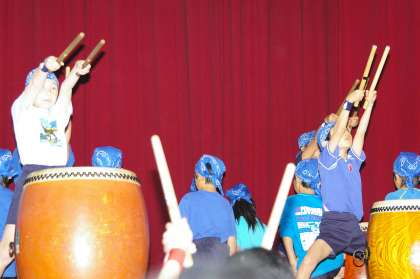 体育館の床を伝わって、太鼓の振動が体の下から響いてきました。