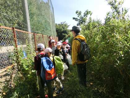 グループに分かれて衣笠山に登りました。途中で,インストラクターの方に,植物について説明やクイズをしていただきながら歩きました。今まで何回か行く中で疑問に思っていた植物の名前やその植物の説明を熱心に聞いていました。