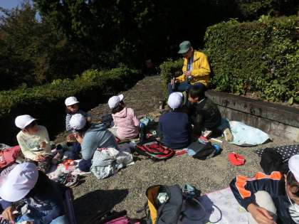 途中で昼食をとりました。保護者の方に作っていただいたお弁当を美味しそうに食べていました。山歩きの疲れを忘れて,友達やインストラクターの方とお話を楽しんでいました。