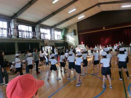 クラス対抗でドッチビーを行いました。いつもと違って,違うクラスの友だちや保護者の方と交流することができ,子どもたちはとてもいい笑顔をしていました。