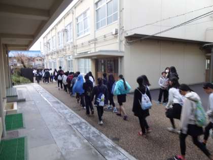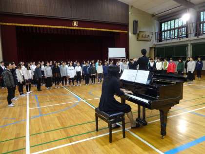 出発前に学校で、声だしと、最後の練習を行いました。