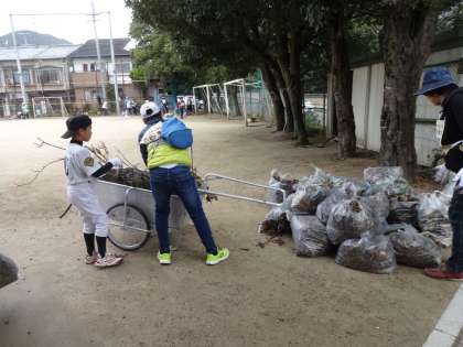 清掃班は、フラワーロードや第2グランドの清掃や木の剪定などを行いました。