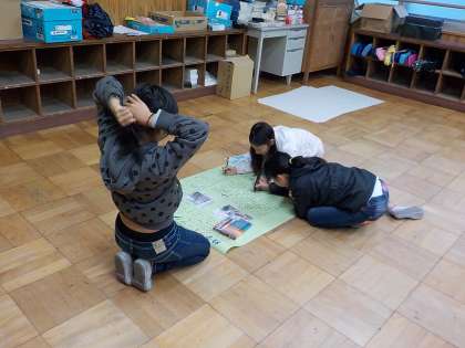 朝から自主的にはばたきで調べていることを,壁新聞にまとめている子どもたちの姿がありました。自分たちで相談して集まり,進んで学習する姿に感心しました。