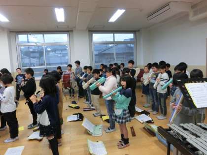 学習発表会の合奏の練習をすすめています。各楽器で分かれて練習をしていますが,練習を始めた頃よりも音の重なりが合うようになってきました。まだ自分のことに必死で周りの音を聞くことが難しいので,少しずつ周りの音を聞き合って,きれいなハーモニーを作ってほしいと思います。