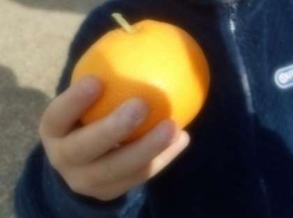 にじのこガーデンのみかん,すっかり色づいて,今日はいよいよ収穫です。去年が豊作だったので今年は数は少なかったのですが,そのせいか、大きなみかんもたくさんありました。一人ずつがはさみで丁寧に収穫しました。