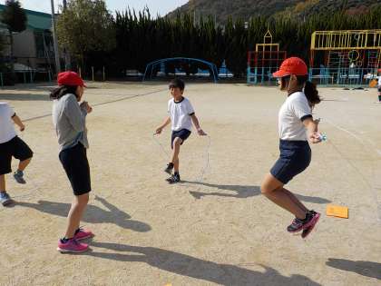 体育科でなわとびの学習をはじめています。去年まで出来なかった技も,友達にアドバイスをもらったり,見本を見せてもらったりしながら跳べるようになった子がたくさんいました。技のレベルも跳ぶ回数も,自分の記録に挑戦しながらがんばっていきましょう!