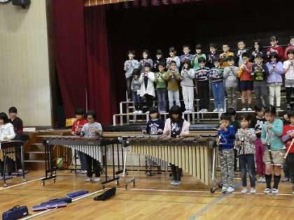 学習発表会に向けて,講堂で練習をしました。初めて,始めから終わりまでの曲の間の移動や並び方を練習しました。本番に向けて,合奏の音も合うようになってきました。