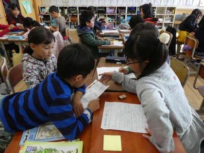 工場見学をして分かったことを,グループで交流しました。見学の時に聞き取れなかったり,分からなかったことを友達から聞くことができました。これから,工場見学をして分かったことをまとめていきます。