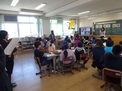 本日3校時に、6年は組で、栄養教諭の福井先生が食育の研究授業を行いました。他校から栄養教諭の先生方が参観に来られました。