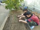 「にじのこカフェ」で提供する新しいメニューの開発に向けて,「にじの子ガーデン」で新しい野菜を育てることにしました。今日は,その野菜の種をまきました。どんな野菜を育てるかはまだお楽しみです!はやく大きくなぁれ!!