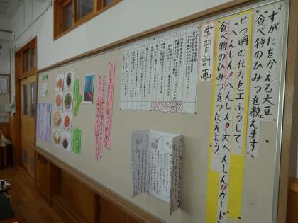 「すがたをかえる大豆」で学んでことを生かして、自分で選んだ食材がどのような変身をしてどんな食品になるのかを調べ、マップにまとめました。