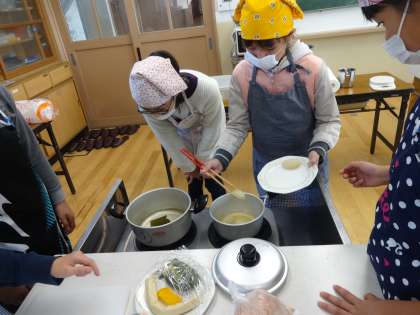 指導していただいたことを忠実に行い、出汁のうま味を生かしたおすましを作りました。
