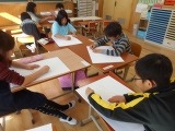 今日の図工の学習では,「ゆうれいなっとう」のお話の中でどの場面がお気に入りなのかを選び,コンテを使って絵を描きました。時折「ゆうれいなっとう」の歌をうたいながら楽しそうに絵を描いている姿も見られ,ほほえましかったです。