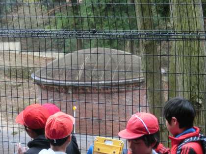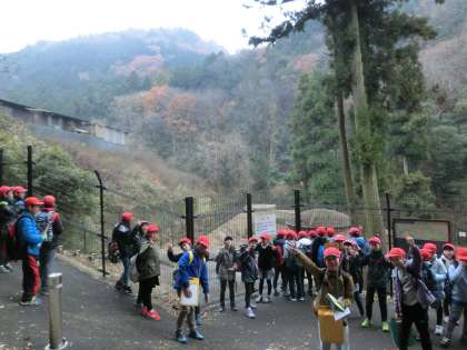 長良山を登り切り,下りに差し掛かると,途中に見えてくるのが「第一たてこう」です。子どもたちは想像していたより大きいことに驚いていました。先日学校の砂場に穴を掘る体験をした子どもたち。1m掘ることも大変だったのに,47mも掘り進めたと思うと,「昔の人たちは本当にすごい!」「想像もできない大変さだっただろう。」と子どもたちは口々に話していました。