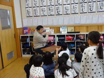 本日の朝は、担任が他のクラスに移動しての読み聞かせを行いました。