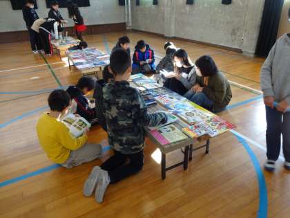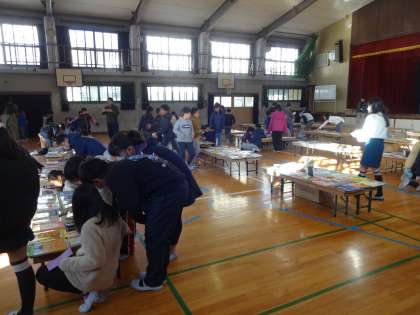 読書週間の取組の一つとして、本日は講堂で選書会を実施しています。