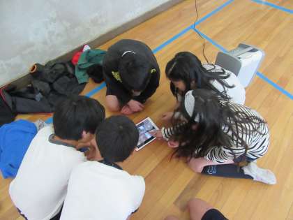 自分たちの踊っている様子を撮影し,それを確認しながら,修正したり,テンポを変えて練習したりなど,工夫しながら取り組んでいます。