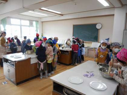 おいもパーティーをしました。パーティーは大成功!子どもたちは,「おいしい!おいしい!」と大変嬉しそうに食べていました。また、子どもから「みんなで育てて,みんなで作って,みんなで食べたからもっとおいしかった。」と言う声が聞こえてきました。