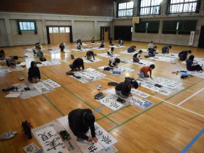 これまでに書いたことのない大きさの用紙,場所は講堂ということで,とても緊張しながら筆を運んでいました。