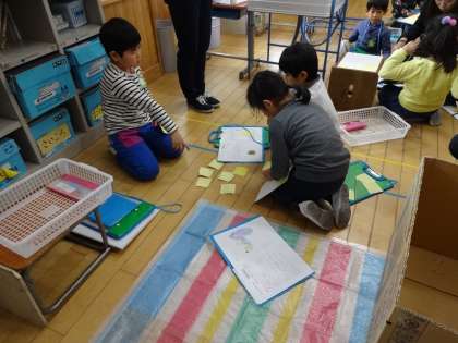 1年い組は、生活科「みんなの にこにこ 大さくせん」の授業を公開しました。