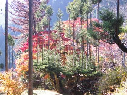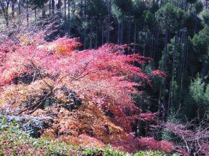 もみじの紅葉と、北山杉のコントラストは最高の景色でした。