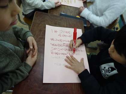 生活科「あそんで ためして くふうして」の学習で作ったおもちゃを,明日1年生とにじの子さんに遊んでもらいます。その準備と招待状を作りました。子どもたちは,楽しく遊んでもらえるようにと,いろいろ手直しをしていました。