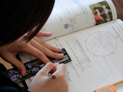 社会科でよく見ている帯グラフや円グラフをかきました。割合を生かして、百分率に直して、間違えないように丁寧にかきました。