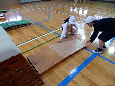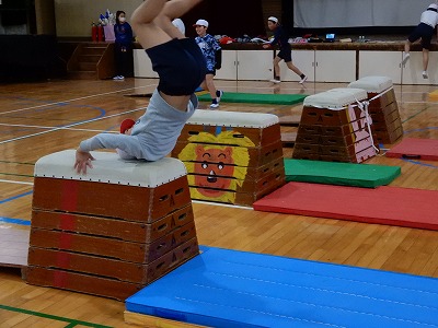 体育科で取り組んでいる跳び箱ですが、準備も協力してすることで、練習の時間をたくさん確保できるようになっています。そして、練習の場を工夫することで、できなかった技もできるようになってきました。