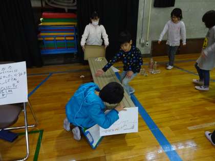 2年生の子どもたちは,とても張り切って自分たちが作ったあそびを紹介していました。1年生やにじの子さん達が楽しんでくれている姿をみて,2年生も達成感がもてる時間となったようでした。