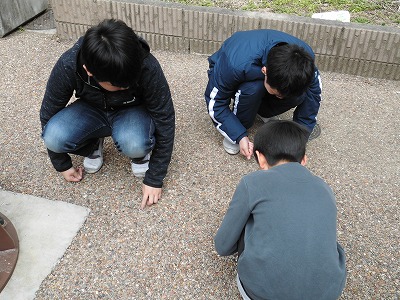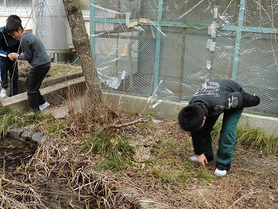 図画工作科の「自然のプレゼント」の作品で使う材料を校内で調達しています。ここでの頑張りが作品を味わい深いものにします。
