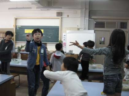秋になり、1年生が育てていた朝がおの種を採っていました。花壇のあちこちでヌスビトハギやイノコヅチなどのくっつく種で遊ぶ子供達もいます。意外と知られていないのですが、正門の入り口のもみじの木にもたくさん種がついています。風で広がる空飛ぶ種です。そこで第2回サイエンスランドでは、空飛ぶ種を子どもたちに体験してもらいました。子どもたちは、松ぼっくりの中にある種やモミジの種を投げて、くるくる回りながらゆっくり落ちてくる様子にびっくりしていました。