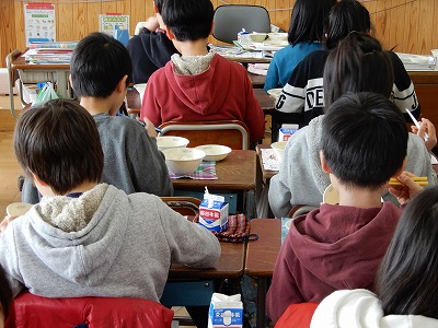 給食週間前も給食週間も・・・給食週間後も本当によく食べます。給食調理さんをはじめ、給食に携わっている方々に感謝をしながら給食を食べています。また、インフルエンザにかからないように、机を前にして給食を食べるようにしています。