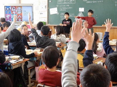 集会委員の子たちが放送で、それぞれのマスコットキャラクター候補について紹介をしました。その放送を聞き、オリンピックに合うマスコットキャラクターがどれなのか考えました。この1票が2020年につながると思うと素敵だなと感じました。