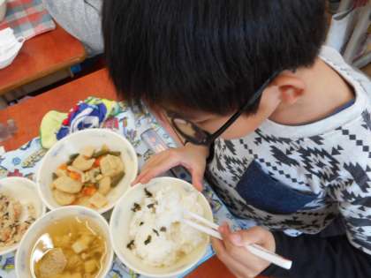 今日の給食は,ご飯・おから・すまし汁・白てんのにつけ・すぐきでした。