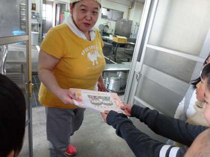 2月5日〜9日の給食週間の時に,給食調理員さんにお手紙を書きました。インフルエンザ等でお休みだった子も書いて,今日やっと手渡すことができました。