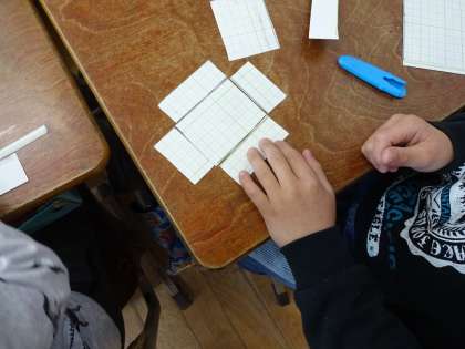 算数では「はこの形」の学習をしています。今日は,工作用紙を使って実際にはこ作りをしました。それまでの学習を生かして,面が6つだから・・・同じ面が2つずつだから・・・と確認しながら作りました。