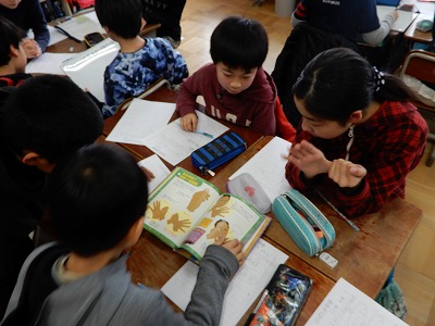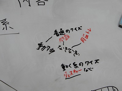 見学で訪れた施設の方を笑顔にしようよレクリエーションの内容をグループで話し合っています。図書室から本を借りてきて準備を進める子や、ホワイトボードを駆使して考えを整理するグループなど、相手意識をもって活動しています。