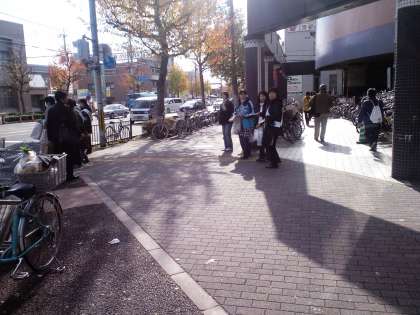 そのあと、北野白梅町交差点付近で人権啓発アピールを行い、ビラとウェットティッシュの配布を行いました。