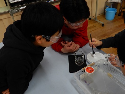 前回は食塩が水にどれだけとけるのか学習を進めました。実験結果から、とける量にはかぎりがあることを確認しました。では、食塩以外はどうなっているのか。ということで、「ホウ酸」で実験をしました。ゴーグルをつけて安全面に気を付けながら取り組みました。